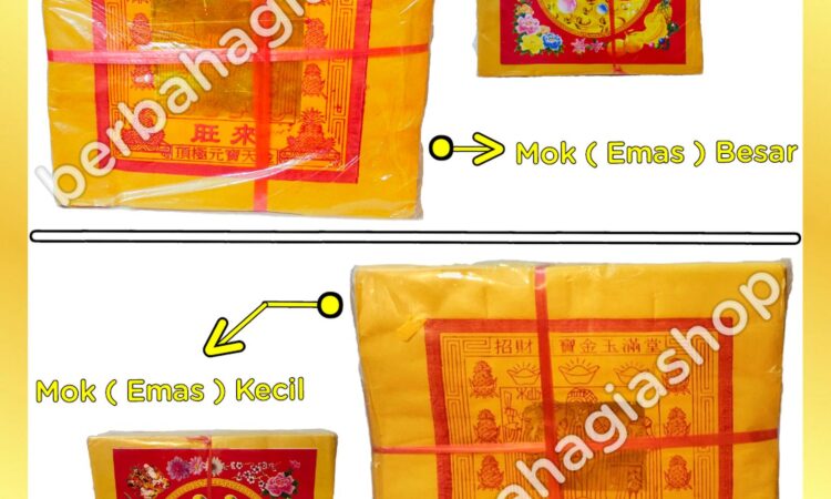 - Mok (Emas): Bagian pada kertas sembahyang yang dilapisi foil berwarna emas, melambangkan uang atau persembahan berharga.