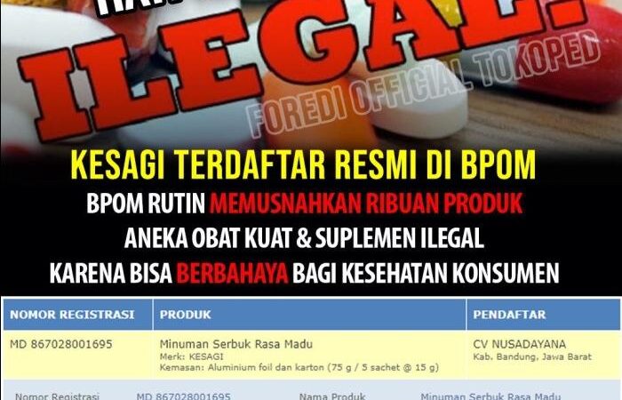 Nikmati kesegaran alami dan khasiatnya dalam setiap tegukan! KESAGI ASLI adalah minuman serbuk dengan rasa madu yang lezat, diformulasikan khusus untuk memberikan manfaat optimal. Produk ini telah terdaftar resmi di BPOM RI MD 867028001695, sehingga Anda dapat mengonsumsinya dengan keyakinan akan keamanan dan kualitasnya.