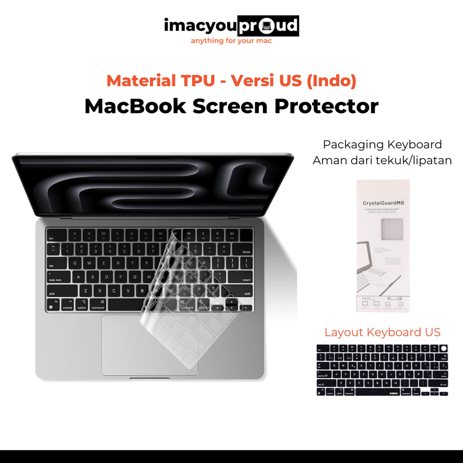 Lindungi keyboard MacBook Anda dari debu, kotoran, dan tumpahan cairan dengan lapisan pelindung yang nyaman dan presisi. Dibuat khusus untuk model MacBook versi Indonesia (US Layout), keyboard protector ini memberikan perlindungan maksimal tanpa mengorbankan pengalaman mengetik.