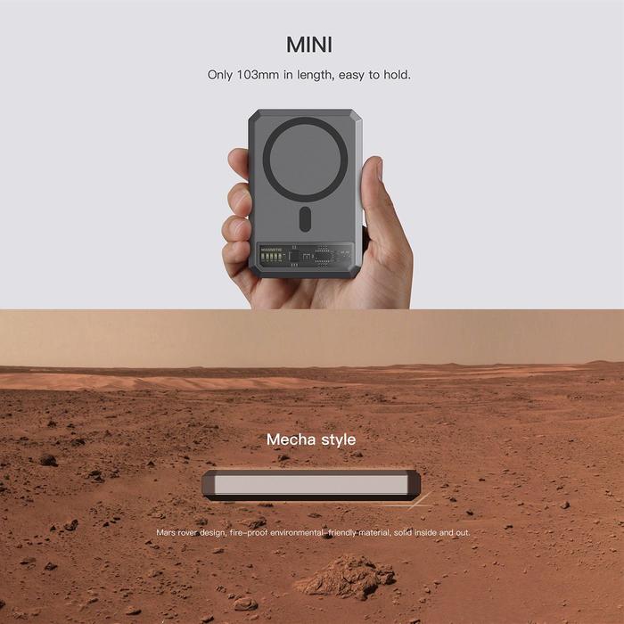 Fitur unggulannya termasuk dudukan (stand) yang dapat ditarik, memungkinkan Anda menonton video atau melakukan panggilan video sambil mengisi daya. Desainnya yang ringkas dan mini (hanya 103mm) membuatnya sangat mudah untuk dibawa ke mana saja.