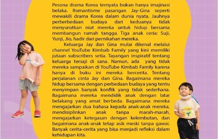 Romansa Jay-Gina ibarat drama Korea nyata yang penuh tantangan. Berbeda budaya, namun tekad membangun rumah tangga tak goyah. Tiga anak mereka—Suji, Yunji, Jio—menjadi bukti cinta yang harmonis. Melalui channel YouTube Kimbab Family (jutaan subscribers), keluarga ini menginspirasi dengan kisah keseharian penuh makna. Namun, ada rahasia yang hanya diungkap dalam buku ini: