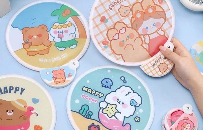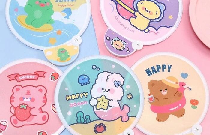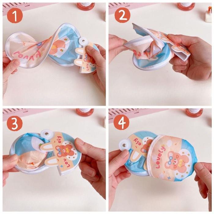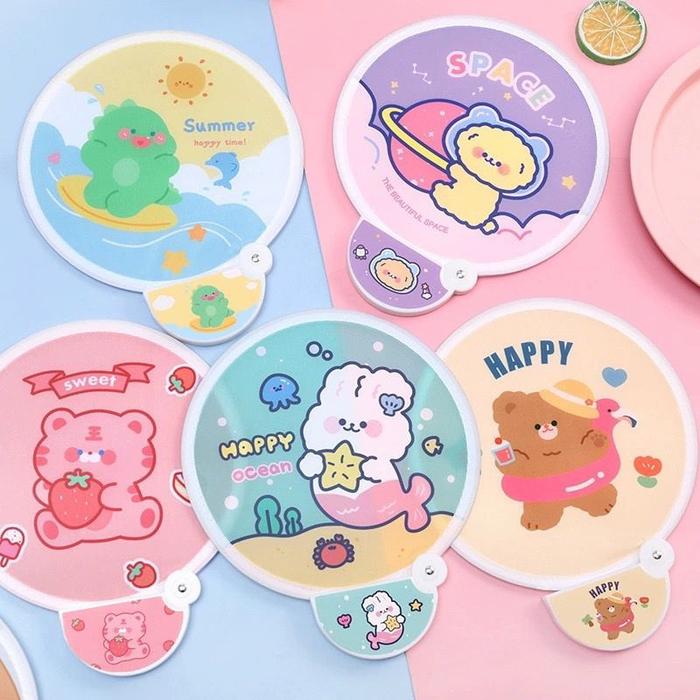 | Bentuk & Desain | Kipas lipat bulat dengan motif beruang lucu (motif random, tidak bisa dipilih). |