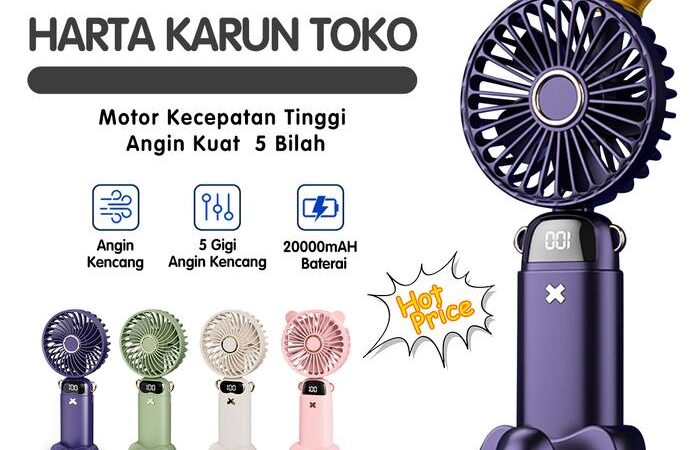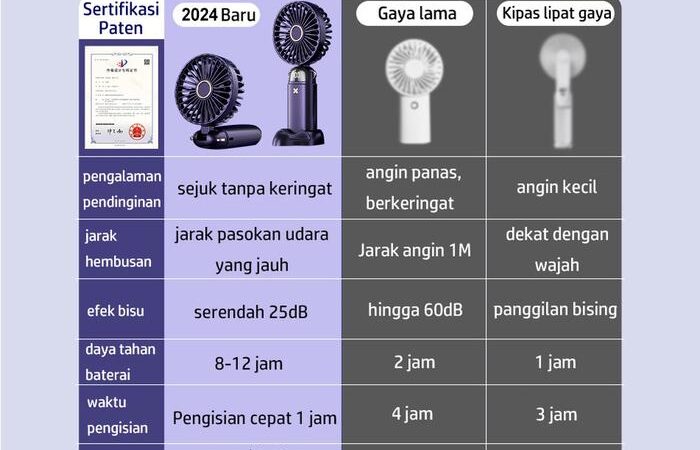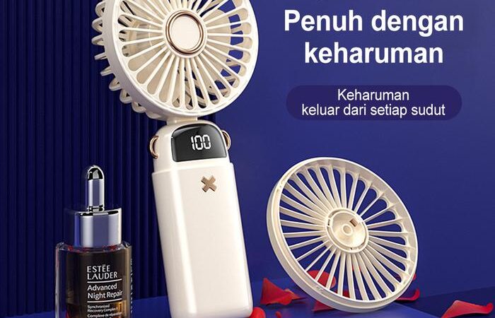 - Dapat digunakan sebagai kipas genggam, kipas meja (dilipat 190°), atau kipas leher (dilengkapi tali).
