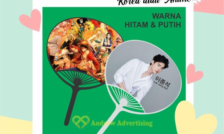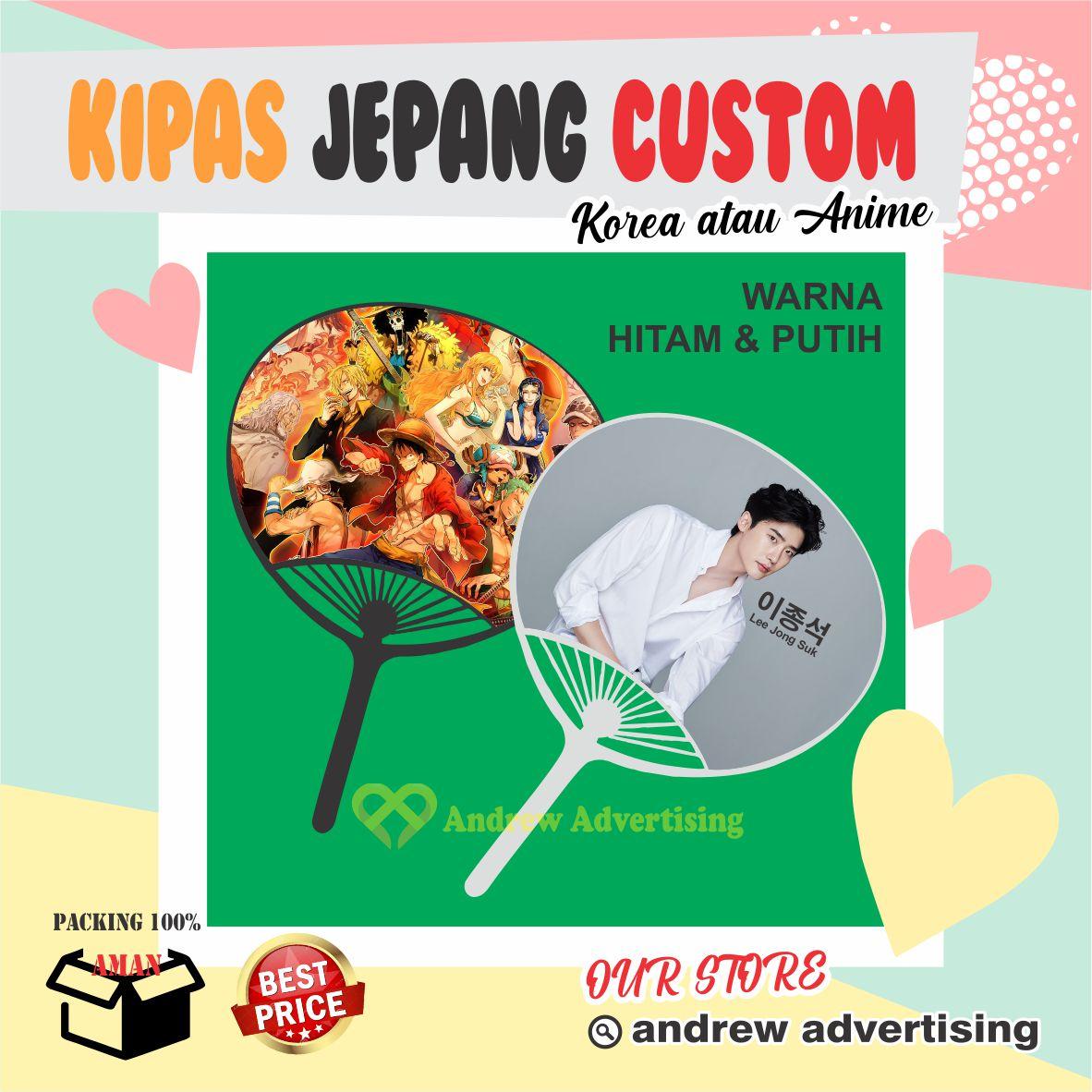 Hadirkan kesan personal dan unik dengan kipas Jepang model kerang yang bisa Anda custom sesuai keinginan. Cetak foto diri, keluarga, pasangan, idol anime dan Kpop favorit, hingga logo perusahaan Anda dengan kualitas cetak tinggi. Kipas ini cocok untuk berbagai acara seperti cosplay, konser, wedding souvenir, atau sekadar koleksi pribadi.