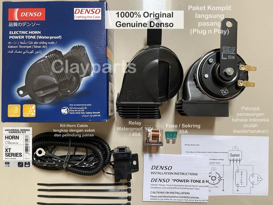 | Relay Kit Horn Cable | Relay Denso Waterproof, fuse, rumah relay, cabling set, soket kabel, cable tie |