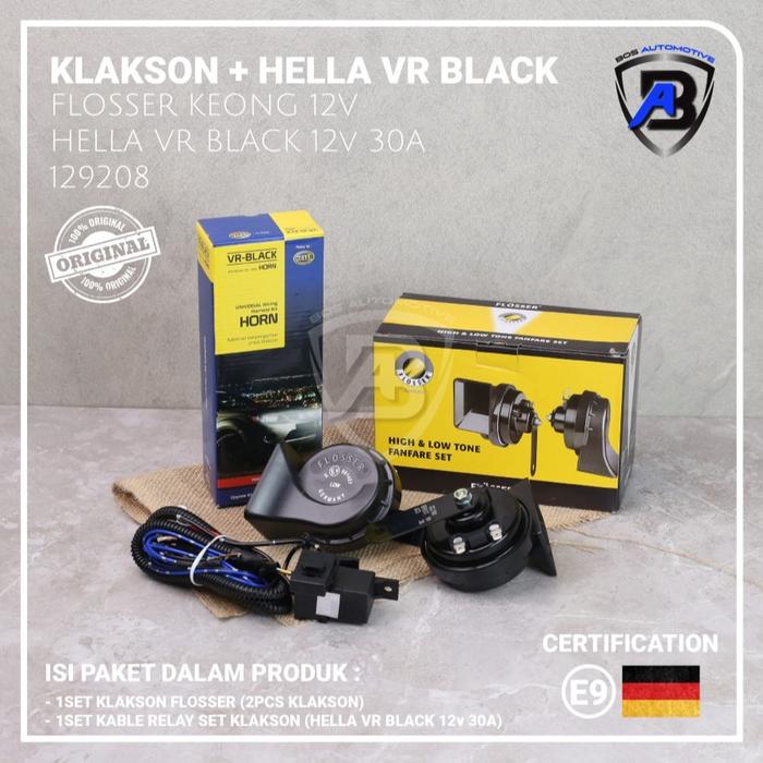 KLAKSON KEONG MOBIL MOTOR FL0SSER (FER) + KABEL RELAY SET