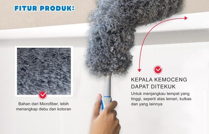 Dirancang untuk membersihkan debu secara efektif tanpa menggores permukaan. Bulu microfiber-nya yang super lembut mengikat dan menangkap debu, bukan hanya menyapunya. Gagang fleksibelnya dapat ditekuk hingga 180 derajat untuk menjangkau area yang sulit, seperti atas lemari, belakang TV, atau sela-sela radiator. Genggaman yang nyaman dan anti-slip memastikan pembersihan yang lama tidak melelahkan. Dapat digunakan untuk seluruh area rumah, mobil, dan motor. Mudah dibersihkan dengan cara dicuci.