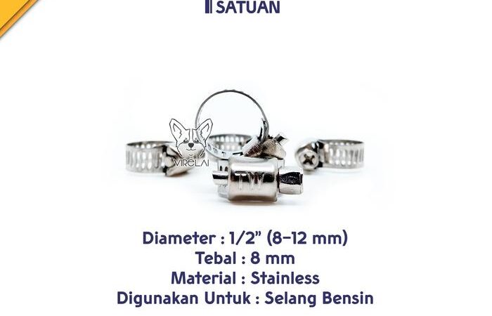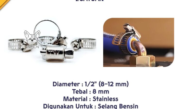 Tips Penting Pemilihan Ukuran: Selalu pilih ukuran klem yang lebih besar dari ukuran selang atau pipa yang Anda inginkan. Contoh: Jika ukuran besi Anda 5/8″, belilah klem ukuran 3/4″.