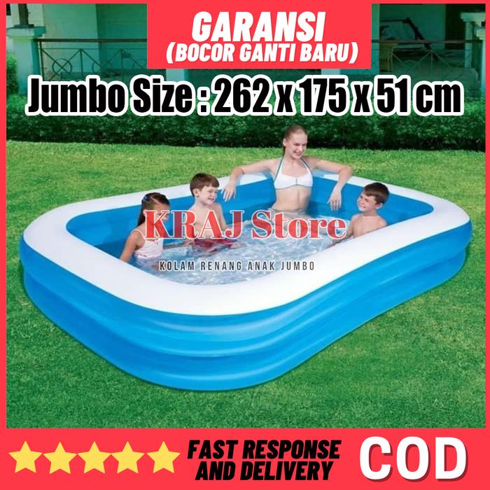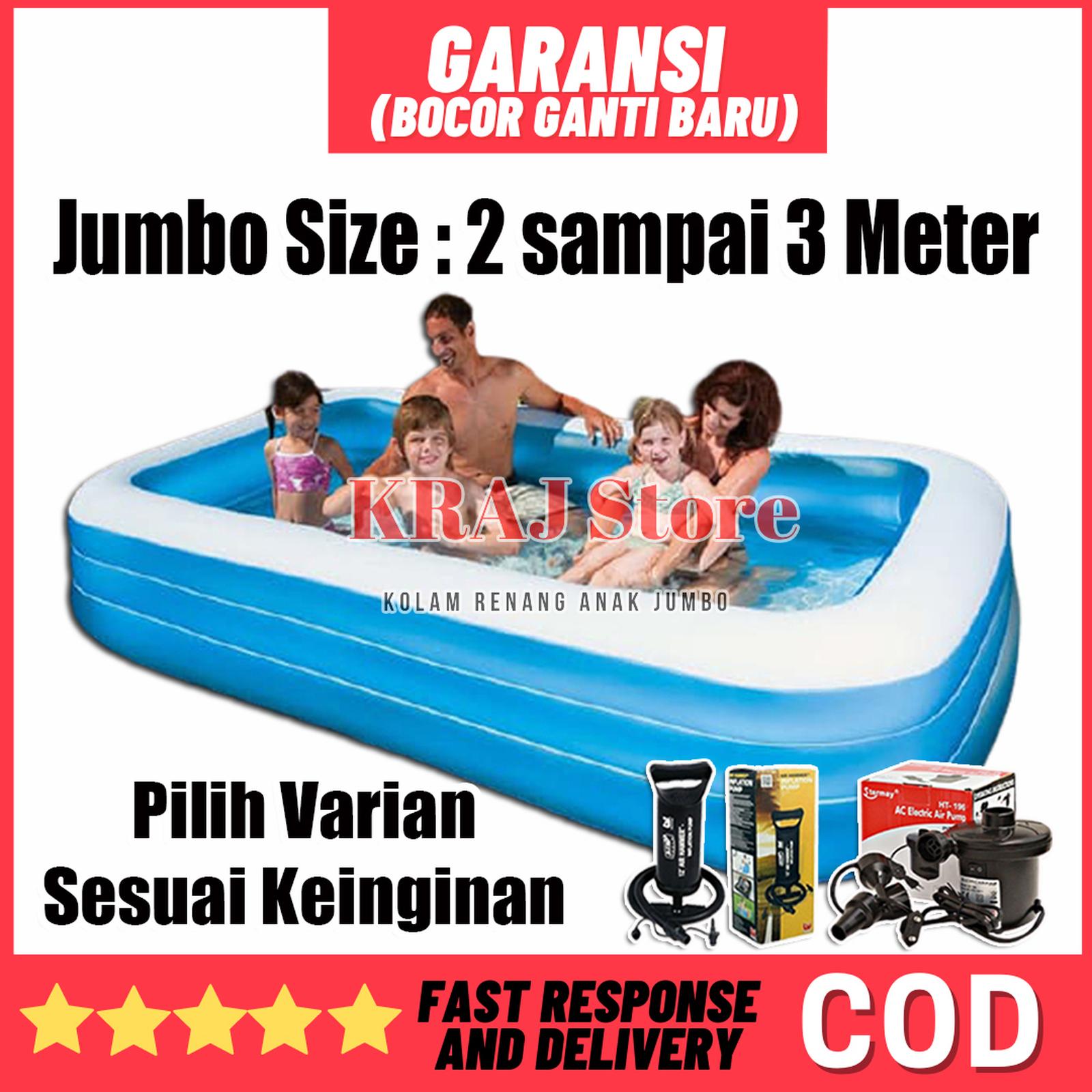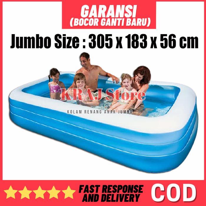 Nikmati ketenangan dengan garansi utama kami: GARANSI BOCOR GANTI BARU. Kami memberikan toleransi kelonggaran ukuran sebesar 15-35 cm setelah kolam dipompa hingga maksimal, yang merupakan hal normal akibat sifat peregangan material. Kualitas bahan yang unggul menjamin pengalaman berenang yang menyenangkan dan tahan lama untuk liburan keluarga di rumah.