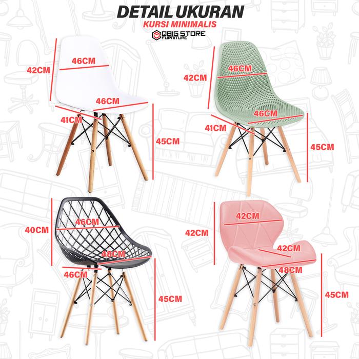 ModelTinggi Dudukan (cm)Lebar Dudukan (cm)Kedalaman Dudukan (cm)Tinggi Sandaran ke Lantai (cm)Material Dudukan & Sandaran