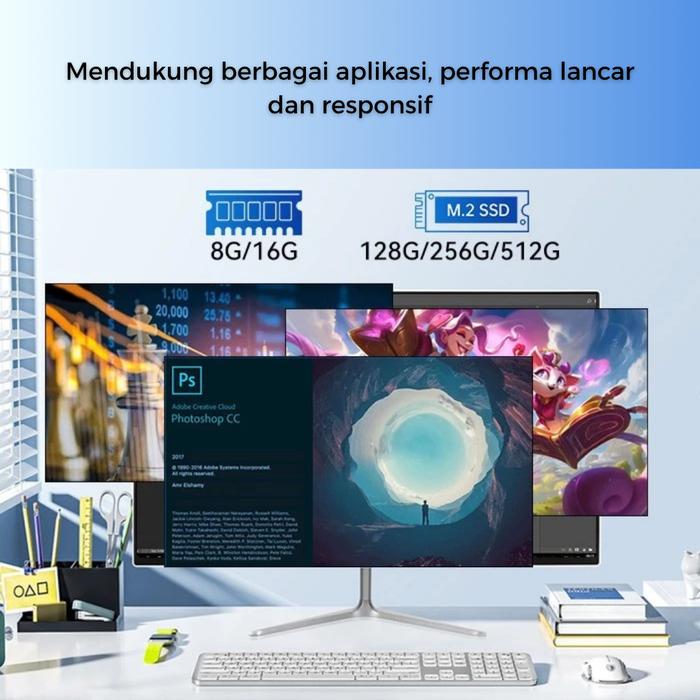 Dilengkapi dengan RAM 8GB atau 16GB serta SSD berkapasitas 256GB, 512GB, hingga 1TB untuk responsivitas dan kecepatan booting yang optimal. Nikmati visual yang jernih melalui layar IPS 19, 22, atau 24 inci dengan resolusi Full HD (1920×1080). Semua unit sudah termasuk webcam bawaan, Wi-Fi, Bluetooth, keyboard, mouse, dan mousepad. Stok lokal tersedia dan siap dikirim dengan kemasan aman.
