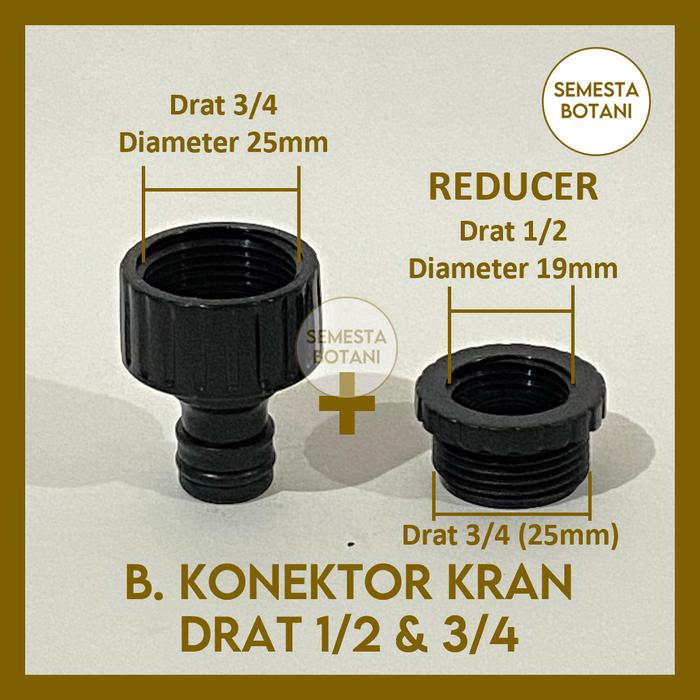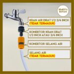 | Kompatibilitas Kran | Cocok untuk kran dengan drat luar 1/2 inch (19mm) DAN 3/4 inch (25mm) berkat reducer yang sudah termasuk. |