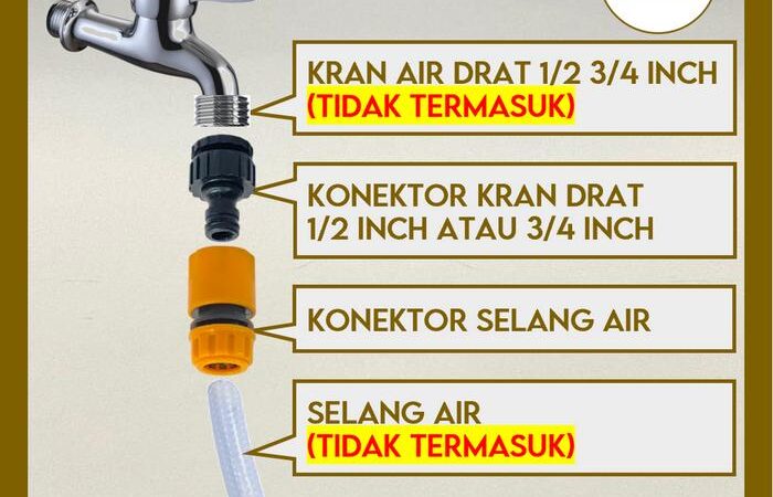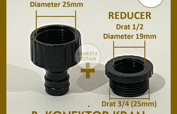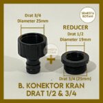 | Isi Paket | 1 buah Konektor Kran (dilengkapi reducer) + 1 buah Konektor Selang. |