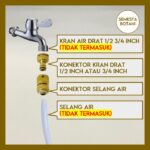 | Kompatibilitas Kran | Dapat digunakan pada kran berulir 1/2 inch dan 3/4 inch karena sudah dilengkapi reducer di dalam paket. |
