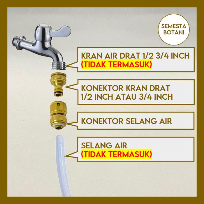 | Catatan Penting | Harga yang tertera hanya untuk produk konektor. Kran air dan selang air tidak termasuk. |