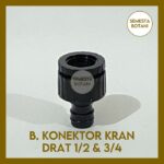 | B. Kran Drat Dalam 1/2 & 3/4 | Kompatibel dengan kran drat 1/2″ (19mm) dan 3/4″ (25mm), termasuk reducer 3/4″ ke 1/2″. |