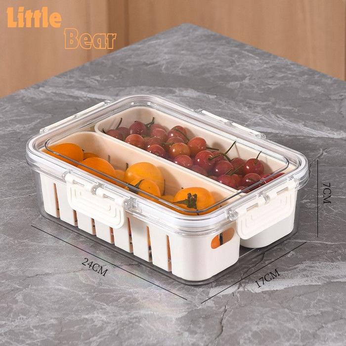 | Desain Praktis | Dilengkapi saringan (drainer) dan tutup transparan dengan sistem penyegelan kedap udara untuk menjaga kesegaran makanan. |