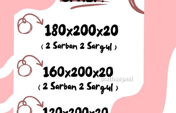 | Isi Set (Uk. 160/180) | 1 Sprei, 2 Sarung Bantal, 2 Sarung Guling |