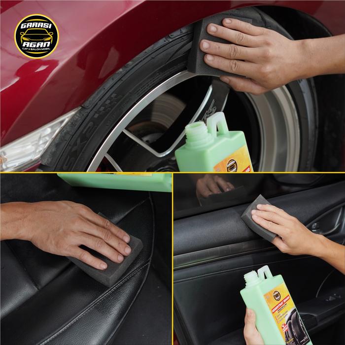 - Oleskan tipis dan merata pada ban, dashboard, atau jok kulit.