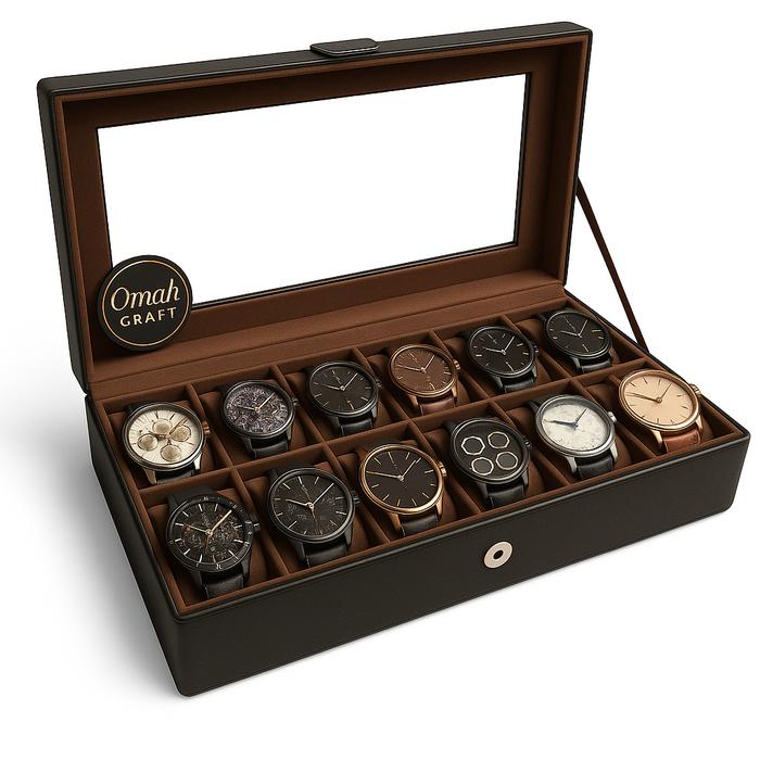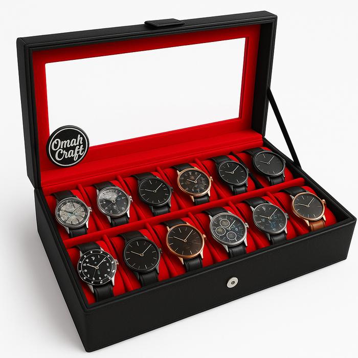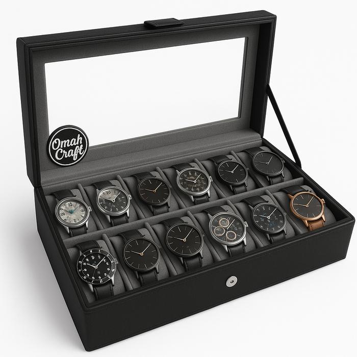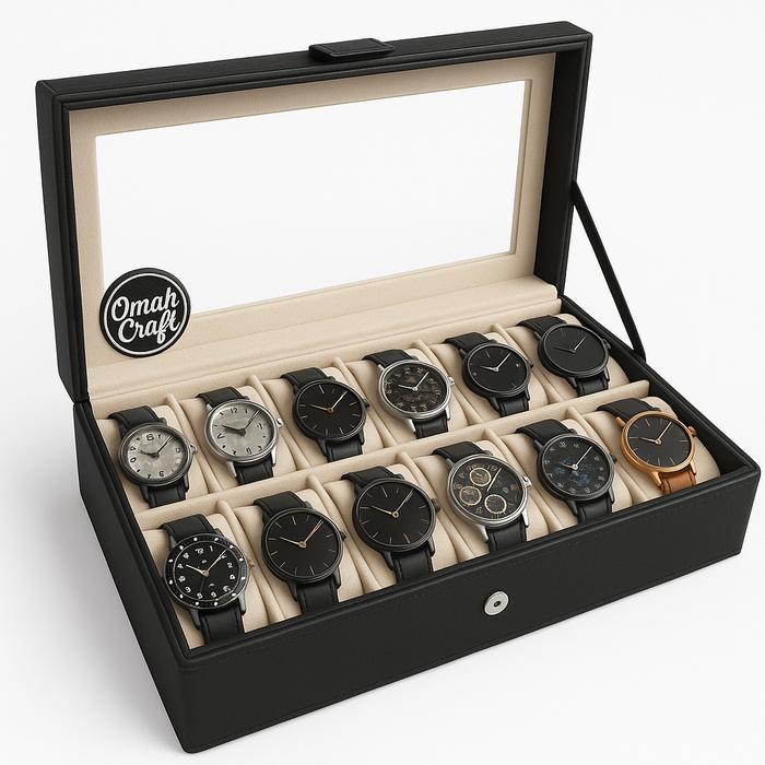 - Fungsi Optimal: 12 slot dengan bantalan khusus mencegah goresan dan kerusakan pada jam.