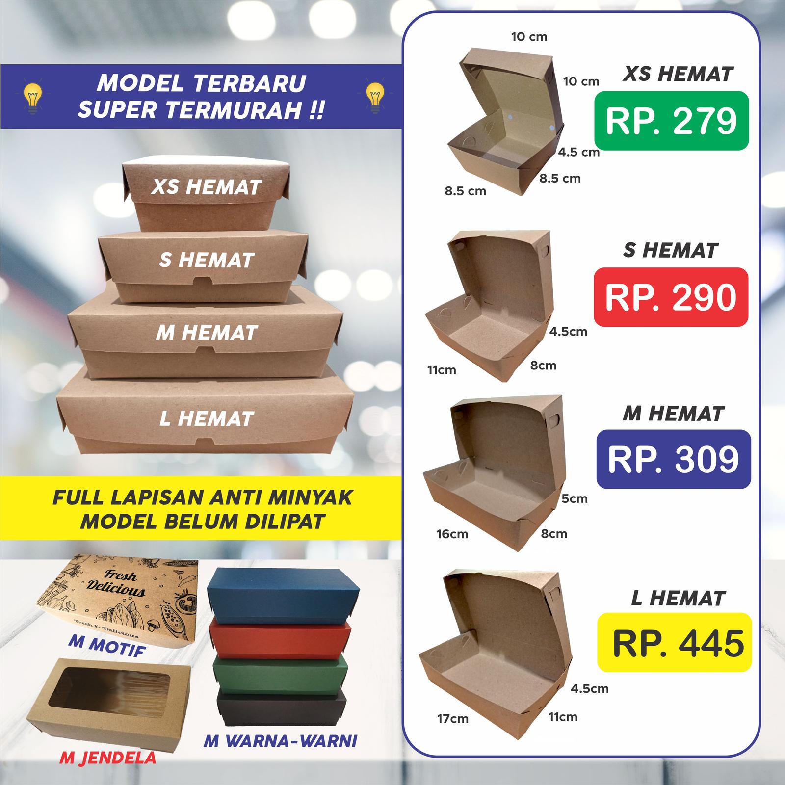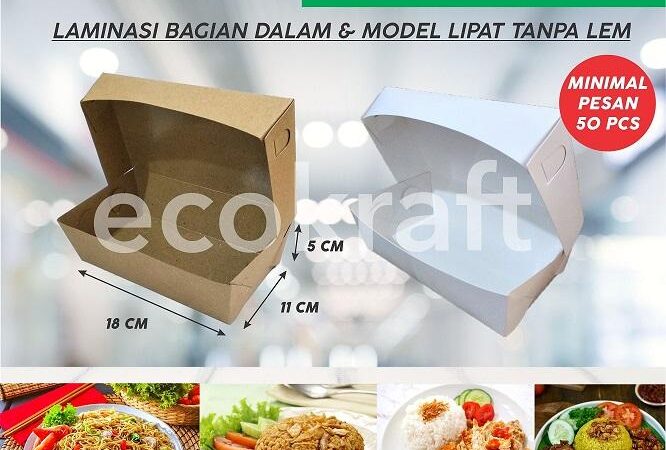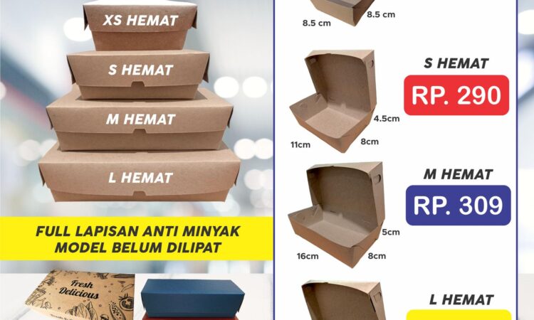 Tersedia dalam berbagai ukuran dan warna untuk segala kebutuhan bisnis kuliner Anda. Dibuat dengan material foodgrade yang aman untuk kemasan makanan langsung. Desain full laminasi menjadikannya lebih kokoh dan tahan terhadap minyak serta cairan, sehingga makanan tetap higienis dan tampil menarik.