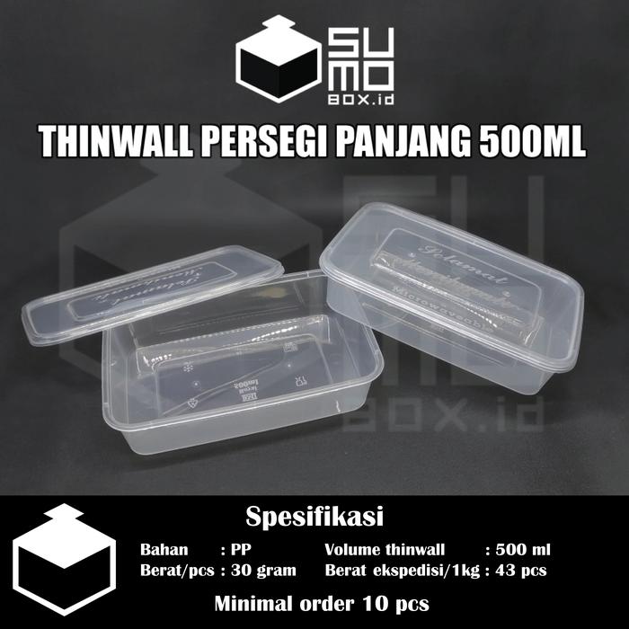 Temukan solusi kemasan makanan praktis dan ekonomis dengan Kotak Makan Plastik Thinwall kami. Dengan volume 500ml, kotak ini ideal untuk berbagai keperluan usaha kuliner Anda, seperti makanan bento, nasi kotak, salad, camilan, atau untuk kebutuhan rumah tangga. Materialnya ringan namun kuat, dirancang khusus dengan dinding tipis (thinwall) untuk mengoptimalkan biaya pengemasan dan pengiriman.