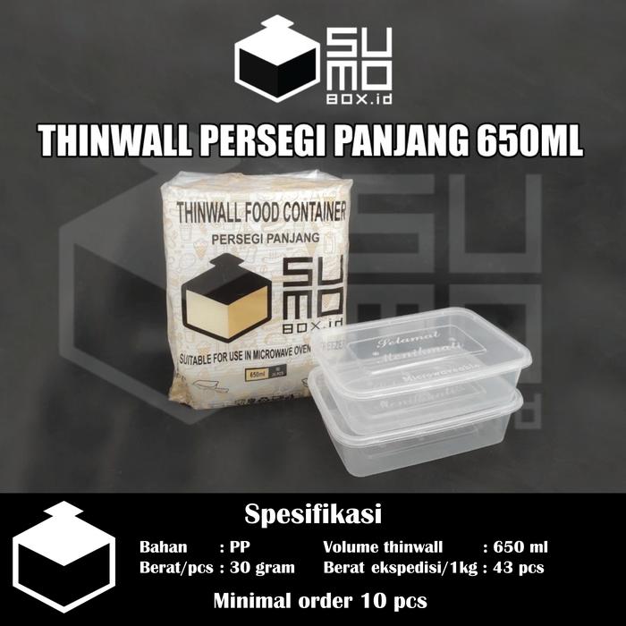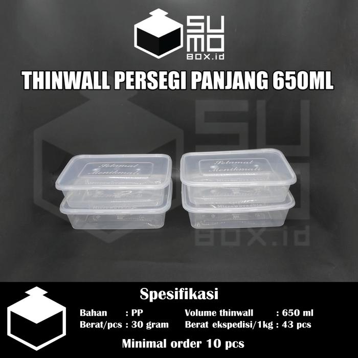 - Thinwall: Jenis kemasan plastik yang tipis dan ringan, namun tetap kuat dan kaku. Dinamakan ‘thinwall’ (dinding tipis) karena proses injeksi moulding yang menghasilkan dinding wadah yang lebih tipis dibanding kemasan plastik biasa, sehingga lebih hemat bahan dan ringan tanpa mengurangi kekuatan.