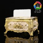 Hadirkan sentuhan elegan dan kemewahan era klasik ke setiap sudut ruangan dengan Kotak Tisu Dekoratif ini. Dibuat dengan desain vintage yang intricate dan dihiasi ornamen mawar berwarna emas yang menawan, produk ini tidak hanya berfungsi sebagai tempat tisu yang praktis tetapi juga sebagai ornamen dekoratif yang mempercantik meja.