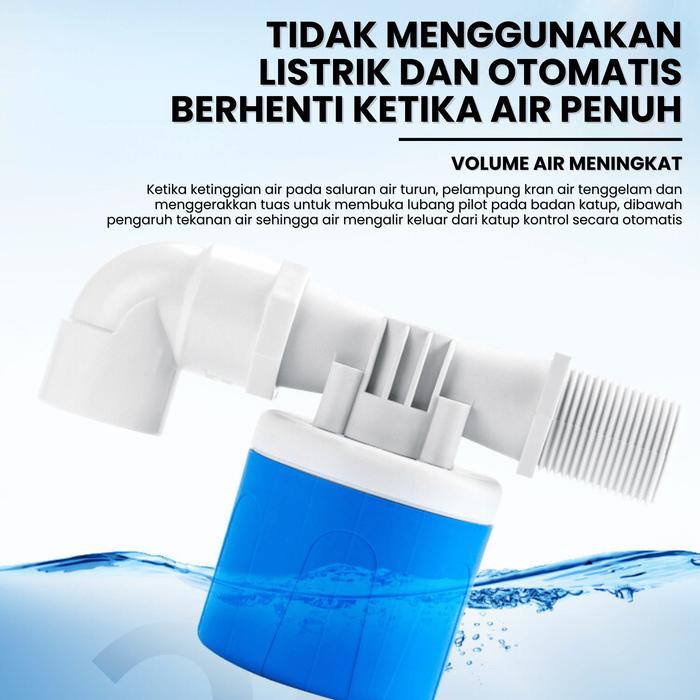 Ketika air dalam tangki mencapai level yang ditentukan, katup pada alat akan menutup secara mekanis untuk menghentikan aliran air. Saat level air turun di bawah batas, katup akan terbuka otomatis untuk mengalirkan air kembali.