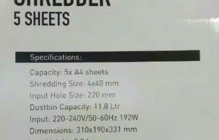 Hasil potongan berukuran 4 x 40 mm memastikan dokumen yang dihancurkan tidak dapat dibaca kembali, sehingga melindungi privasi dan data penting dari penyalahgunaan. Mesin ini mampu menghancurkan hingga 5 lembar sekaligus, cocok untuk kebutuhan harian di lingkungan kerja, sekolah, atau rumah.