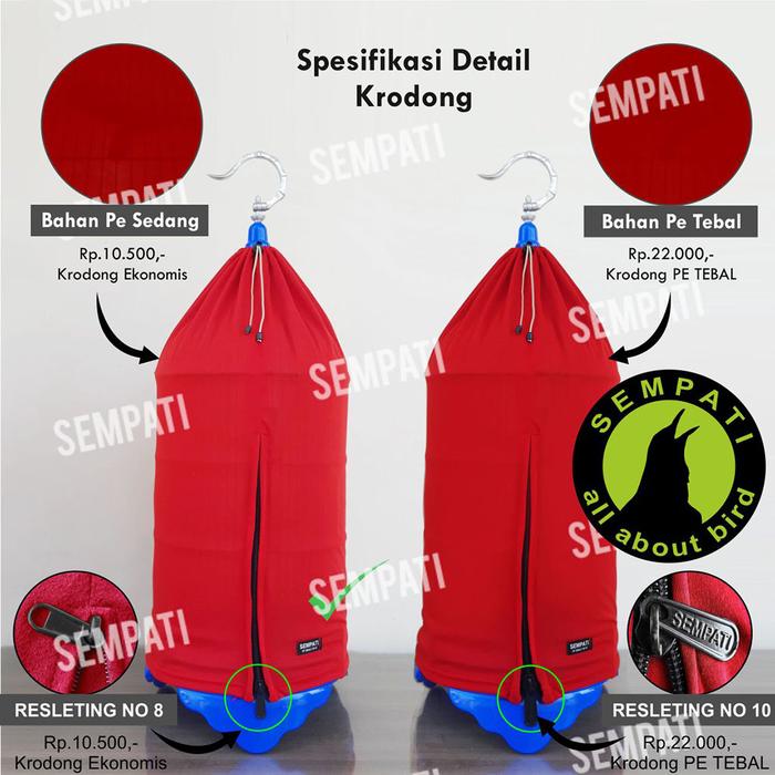 Krodong Sempati sangat awet dan tahan lama. Fungsinya tidak hanya melindungi, tetapi juga membantu meningkatkan suhu panas di dalam sangkar, sangat ideal untuk memuluskan besutan burung agar melenggang ke tangka juara. Krodong ini juga efektif untuk meredam daya fighter burung selama di rumah, dalam perjalanan, atau saat dilapangan.