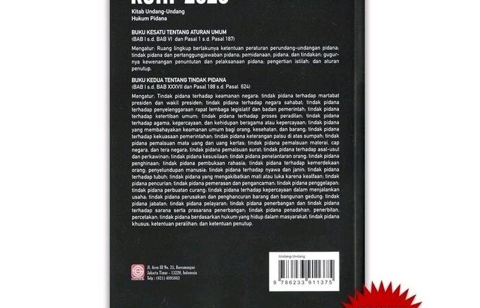 Dapatkan buku resmi KUHP 2023 yang telah menggantikan KUHP warisan kolonial. Buku ini merupakan sumber primer yang wajib dimiliki oleh praktisi hukum, akademisi, mahasiswa, dan seluruh masyarakat yang ingin memahami dasar-dasar hukum pidana Indonesia yang baru.