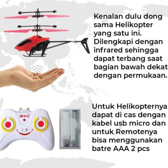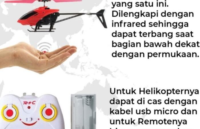 Kontrol Sensor TanganKendalikan helikopter dengan gerakan tangan Anda. Sensor di bagian bawah merespons gerakan untuk manuver naik, turun, dan maju dengan mudah.