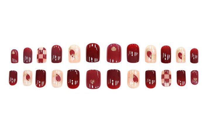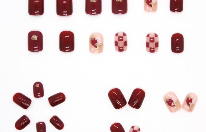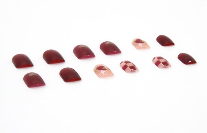 - Press-on nails: Kuku palsu yang dapat langsung ditempelkan tanpa perlu menggunakan lem khusus, biasanya sudah memiliki lapisan perekat di bagian dalamnya.