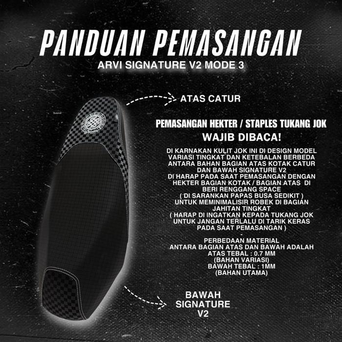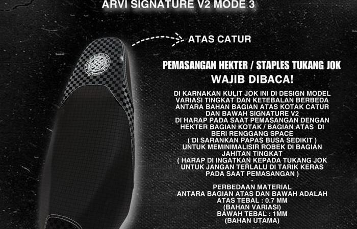 Tampilkan gaya terbaik untuk motor Anda dengan Kulit Jok Arvi Signature V2 Mode 3. Produk ini telah dijahit dengan presisi tinggi dan siap dipasang, menghemat waktu dan tenaga Anda. Dibuat oleh Arvicreations, setiap produk menjamin kualitas orisinal dan ketahanan yang superior.