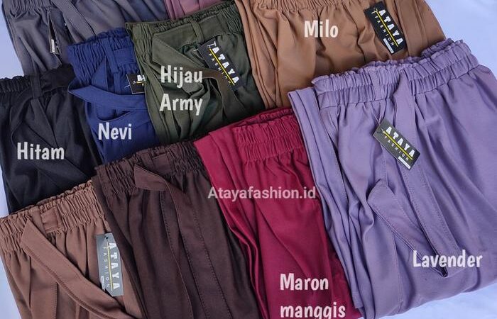 - Kulot: Celana wanita dengan potongan longgar dan nyaman, sering kali memiliki elastisitas di bagian pinggang.