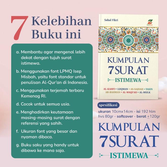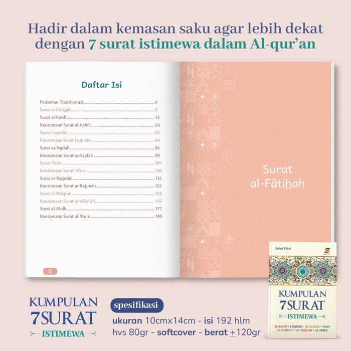 Buku “Kumpulan 7 Surat Istimewa” hadir dalam format saku (10×14 cm) yang praktis, dilengkapi: