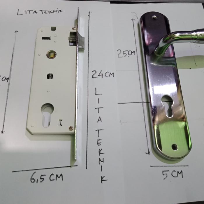 Tingkatkan keamanan dan estetika pintu utama Anda dengan set kunci pintu besar komplit kami. Dirancang dengan handle sepanjang 25cm, produk ini memberikan kesan kokoh dan mewah. Seluruh komponen sudah termasuk dalam satu set sehingga Anda tidak perlu membeli bagian lain dan dapat langsung memasangnya.