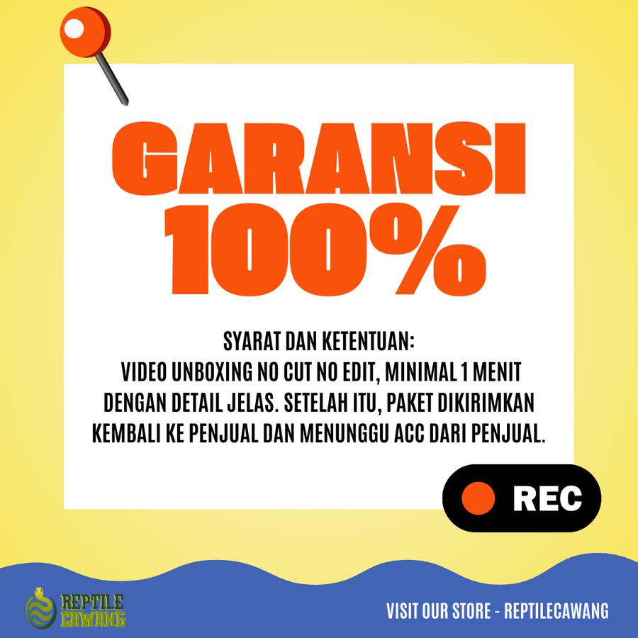 | Garansi DOA | Ganti rugi jika kura-kura mati saat tiba (Death On Arrival). Syarat: video unboxing tanpa potongan/edit, klaim dalam 1 jam setelah paket diterima. |