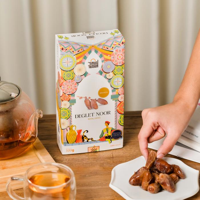 Rasakan keistimewaan Kurma Deglet Noor asli Tunisia yang masih melekat pada tangkainya. Dibudidayakan di oasis gurun Algeria dan Tunisia, setiap butir kurma ini memiliki warna amber keemasan yang cerah dan memesona. Daging buahnya semi-kering dengan tekstur kenyal yang renyah, memberikan sensasi gigitan yang memuaskan.