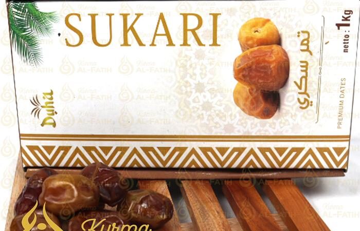 Rasakan kelezatan Kurma Sukari Premium asli dengan kualitas terbaik. Kurma ini memiliki karakteristik unik: daging buahnya lebih besar dan tebal dengan tekstur renyah di luar namun lembut di bagian dalam. Warnanya kuning kecoklatan dengan bentuk kerucut berkerut. Cita rasanya sangat manis, alami, dan mirip gula aren, menjadikannya hidangan istimewa untuk keluarga.