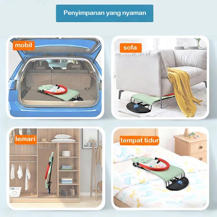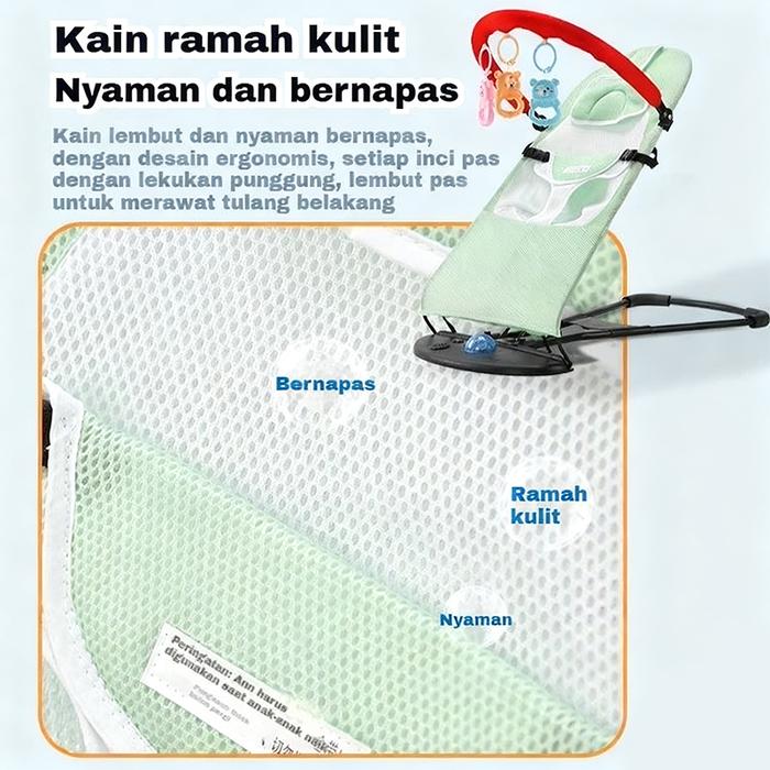 Kursi goyang ini tidak hanya menenangkan bayi dengan gerakan alami, tetapi juga merangsang perkembangan indera melalui warna-warna cerah dan mainan yang dapat diraih. Orang tua dapat berinteraksi langsung sambil membantu bayi belajar kosakata baru. Dibuat dari bahan environmentally friendly dan non-toxic, sehingga sangat aman untuk kulit sensitif bayi.