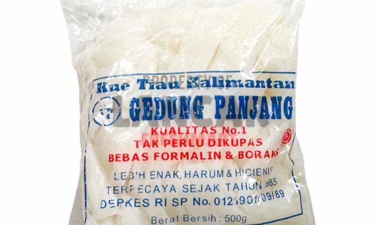 Kwetiau Gedung Panjang 500gr adalah kwetiau basah premium produksi Gedung Panjang, brand ternama sejak 1985. Dibuat tanpa pengawet, teksturnya kenyal alami dan cocok untuk hidangan seperti kwetiau goreng, siram, atau kuah. Gramatur 500gr sengaja dirancang untuk memudahkan pembeli grosir (HORECA) yang memesan puluhan kilo/bal.