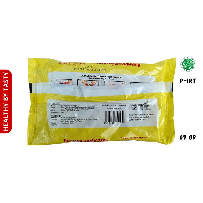 - Bumbu: Perisa Ayam, Penguat Rasa (Monosodium Glutamat), Bubuk Bawang Putih, Bubuk Lada, Gula, Garam