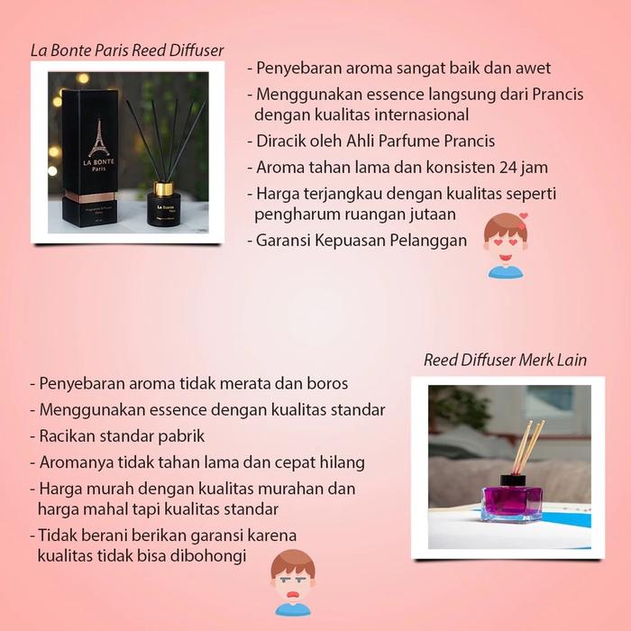 Telah hadir La Bonte Reed Diffuser, solusi akhir untuk masalah pengharum ruangan Anda. Apakah Anda pernah mengalami masalah seperti aroma yang tidak menyebar, cepat habis dalam hitungan minggu, atau bahkan menimbulkan rasa pusing dan mual? Mungkin Anda juga lelah dengan produk yang aromanya tidak konsisten dan proses penggunaan yang merepotkan.