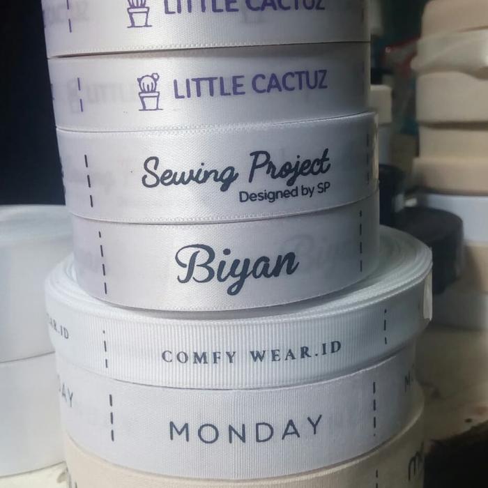Bingung mencari label pita satin berkualitas untuk merek baju atau hijab Anda? Kami menyediakan label pita satin custom dengan bahan premium, tahan lama, dan hasil cetak tajam. Cocok untuk memperkuat identitas brand Anda!