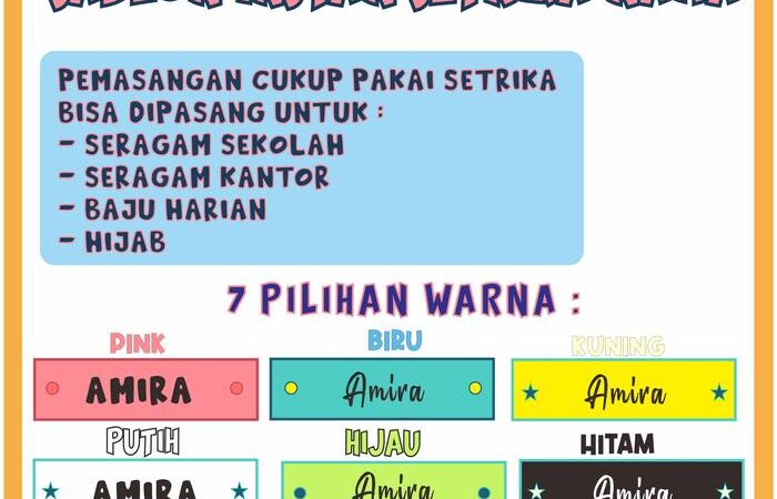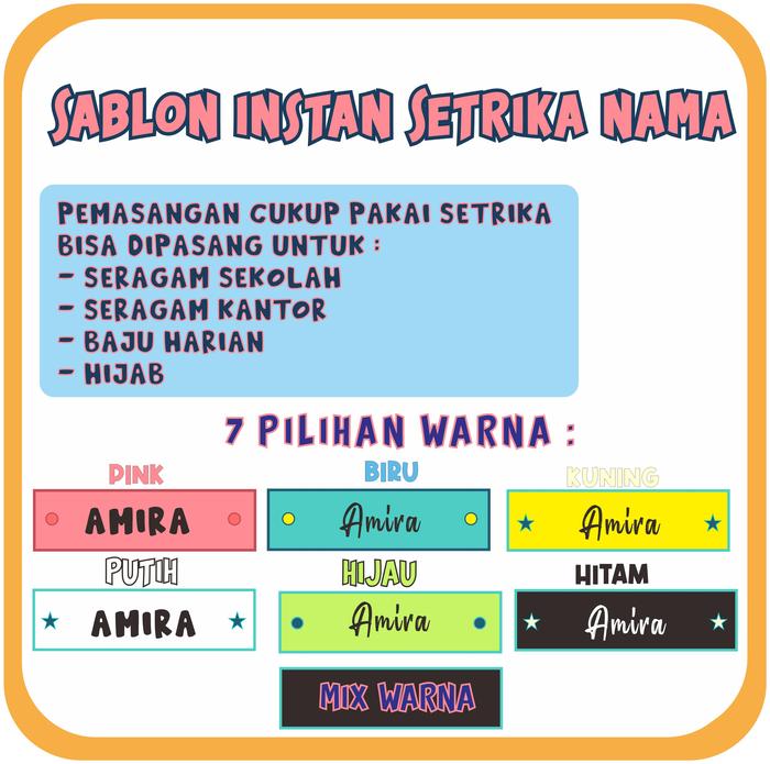 Ideal digunakan sebagai penanda pada seragam, jilbab, tas kain, dan berbagai aksesori berbahan kain lainnya untuk anak pondok, asrama, atau kebutuhan sehari-hari.