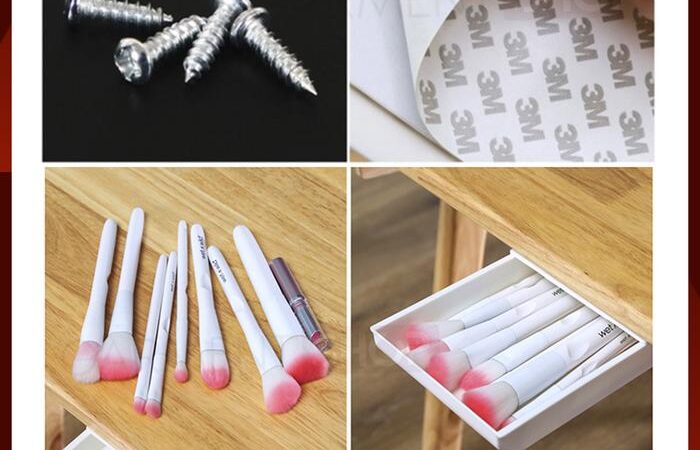 • Perekat: Material perekat (biasanya berupa double-sided tape atau lem) yang disertakan untuk menempelkan laci dengan kuat dan permanen pada permukaan yang diinginkan.