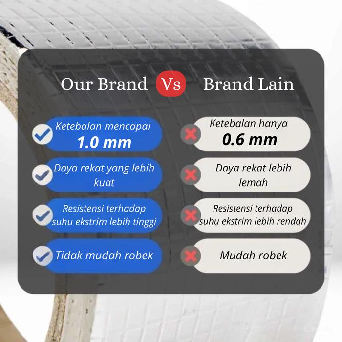 Dengan lapisan aluminium yang tahan terhadap kondisi ekstrem, lakban ini tidak hanya kedap air (waterproof) tetapi juga mampu bertahan pada suhu sangat rendah maupun sangat tinggi. Ideal untuk perbaikan atap, pipa air (PVC maupun besi), saluran AC, ventilasi, hingga penggunaan dalam proyek konstruksi dan industri.