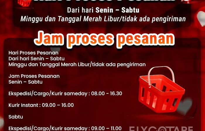 - Waktu Proses: Order diproses Senin – Sabtu (tutup pada Minggu & tanggal merah).